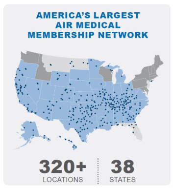 Membership covers not just yourself, but anyone who resides in your home. Plus membership is valid in all service areas, so you are covered at home and while traveling. The AirMedCare Network includes coverage in 38 states and over 320 locations in the U.S.